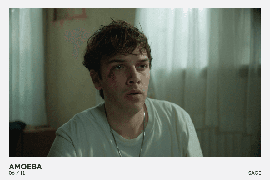 Amoeba is a romantic turned horror film about a young queer man Levi, After he survived a brain eating parasite, Levi is invited to his secondary school crush Roan’s house for the weekend. Waking from an intoxicated night of reconnecting, Levi becomes convinced Roan kissed him. As Levi seeks the truth of what happened that night, his grip on reality loosens. The film is a manifestation of Levi’s reality as it falls apart and is taken over by the brain eating Amoeba and his obsession and feelings for his school crush become overwhelmingly dangerous.