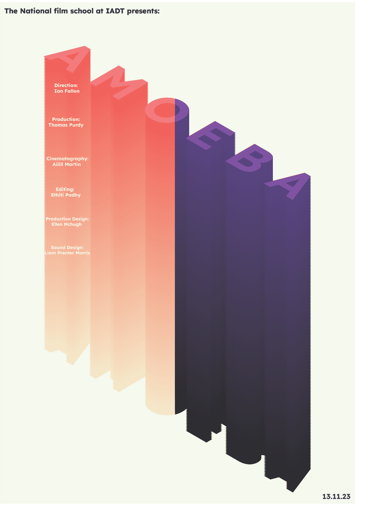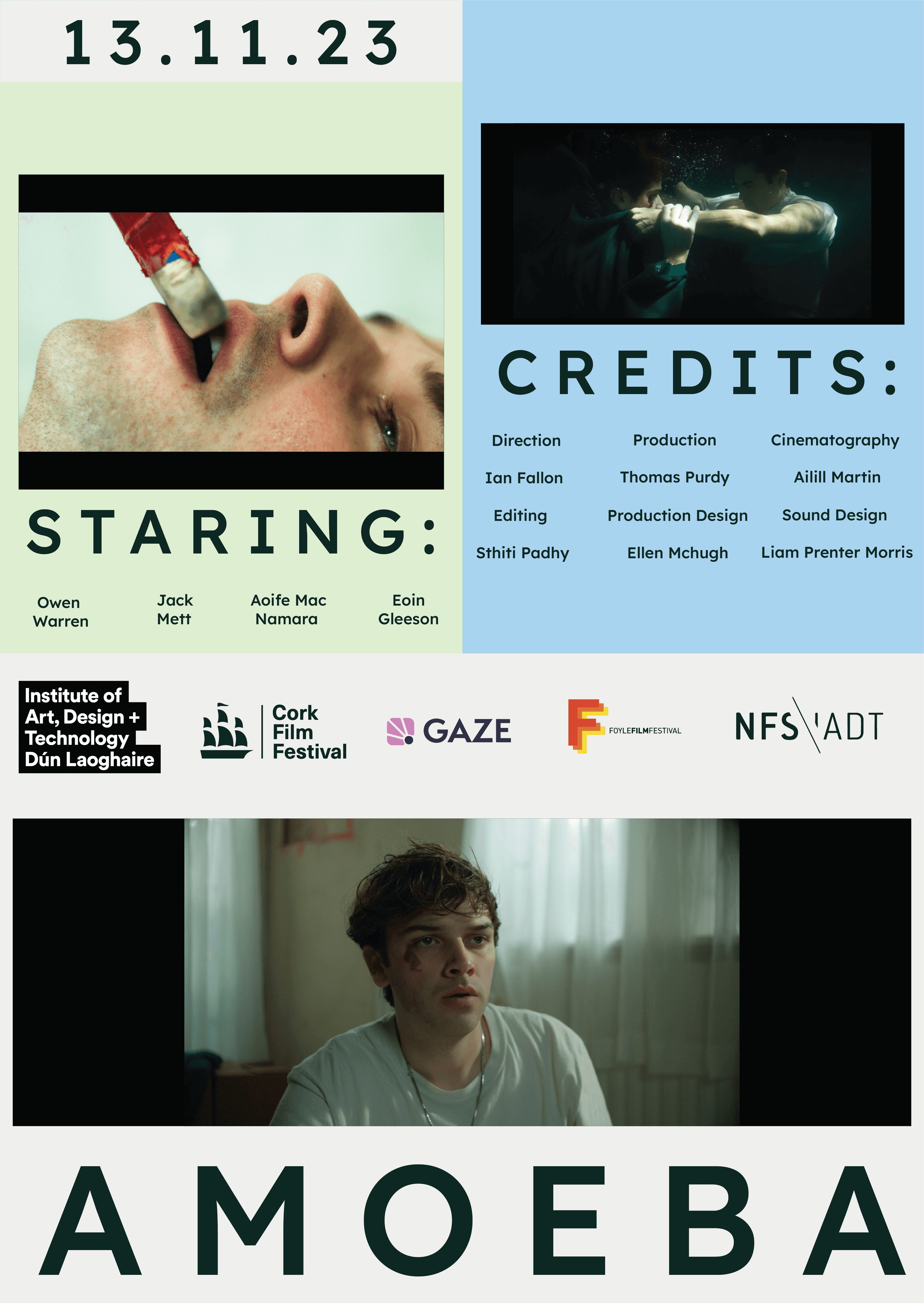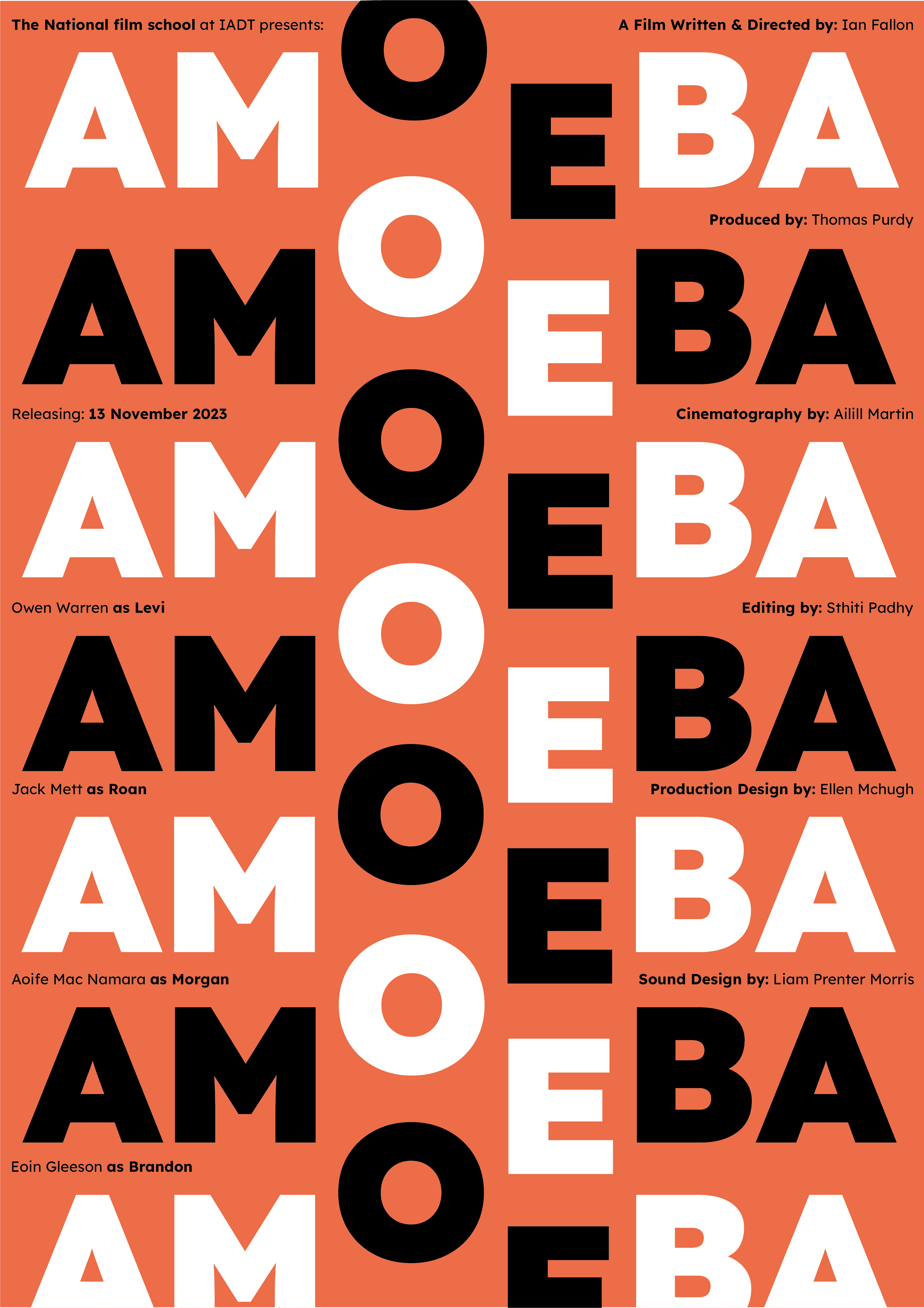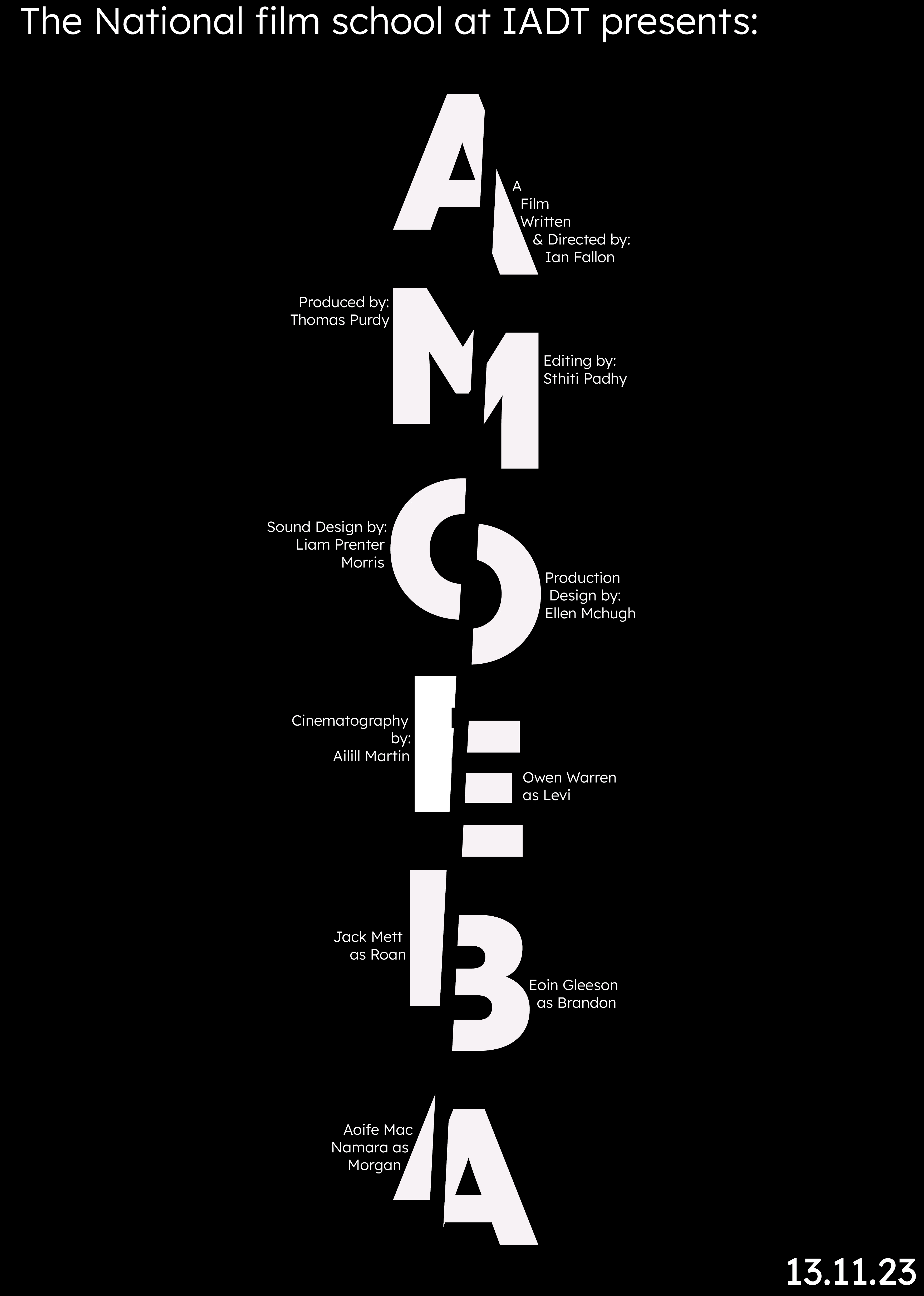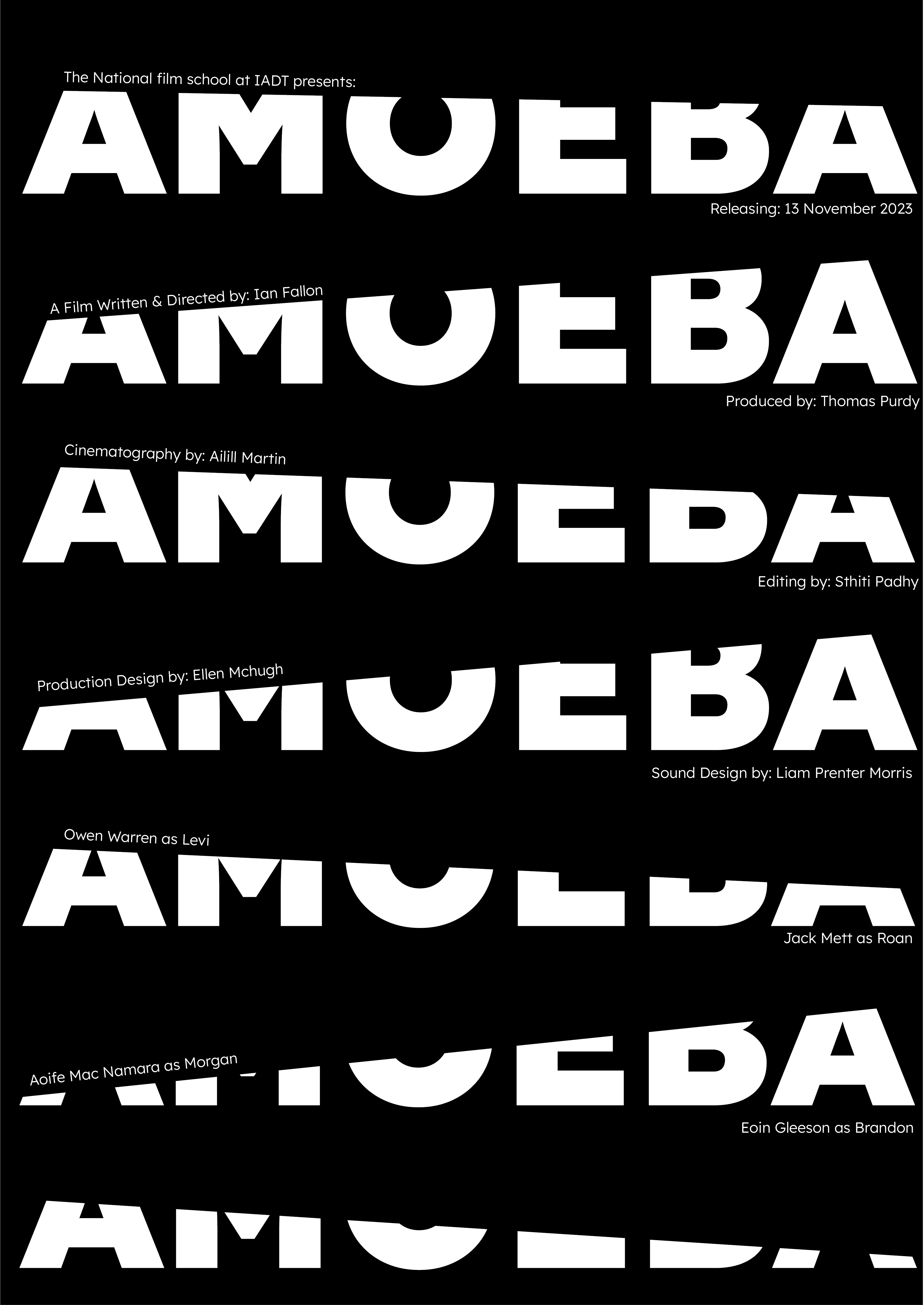 Design an opening title sequence and promotional campaign for the short student film Amoeba by Ian Fallon graduate of The National Film School (NFS) Ireland IADT.
