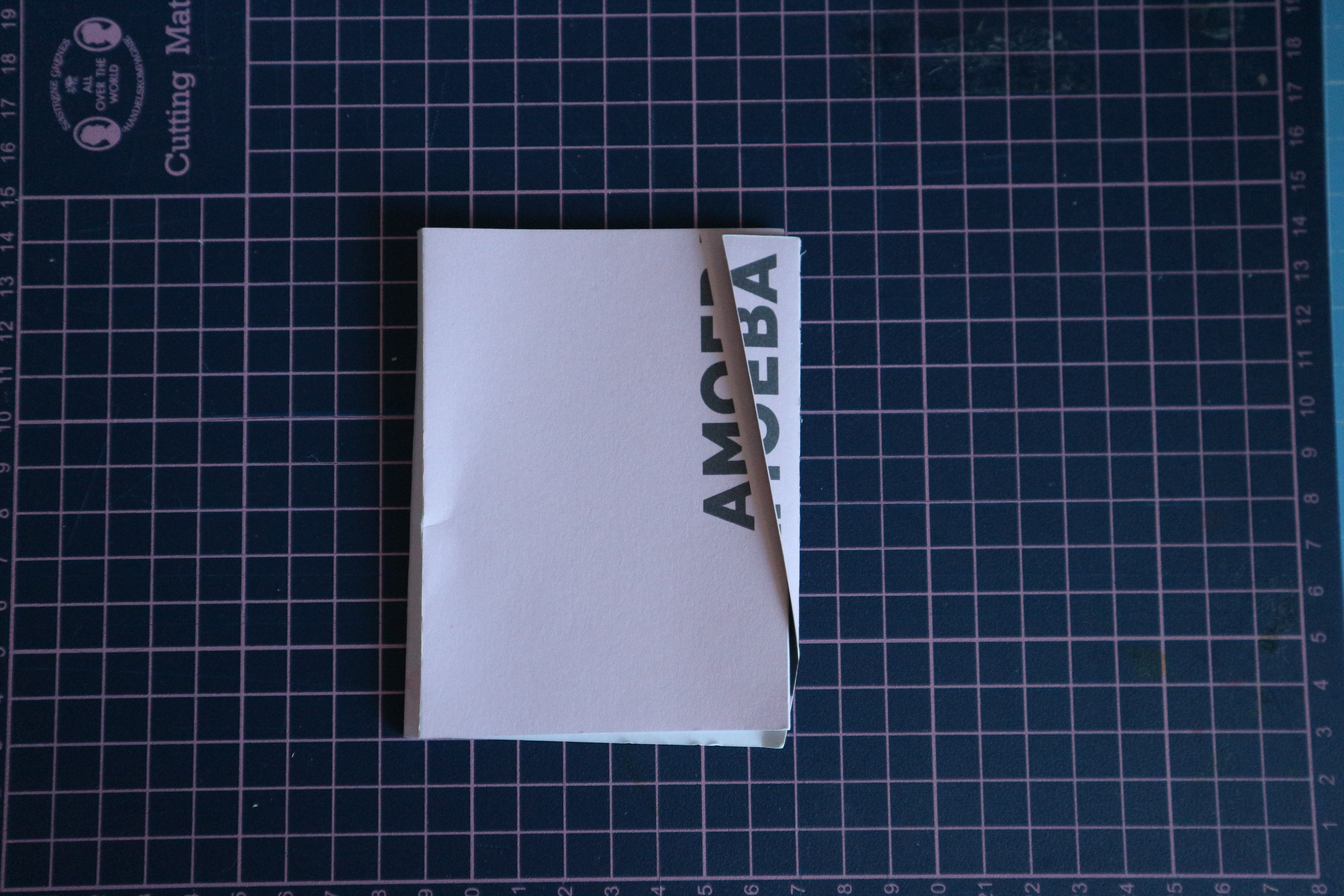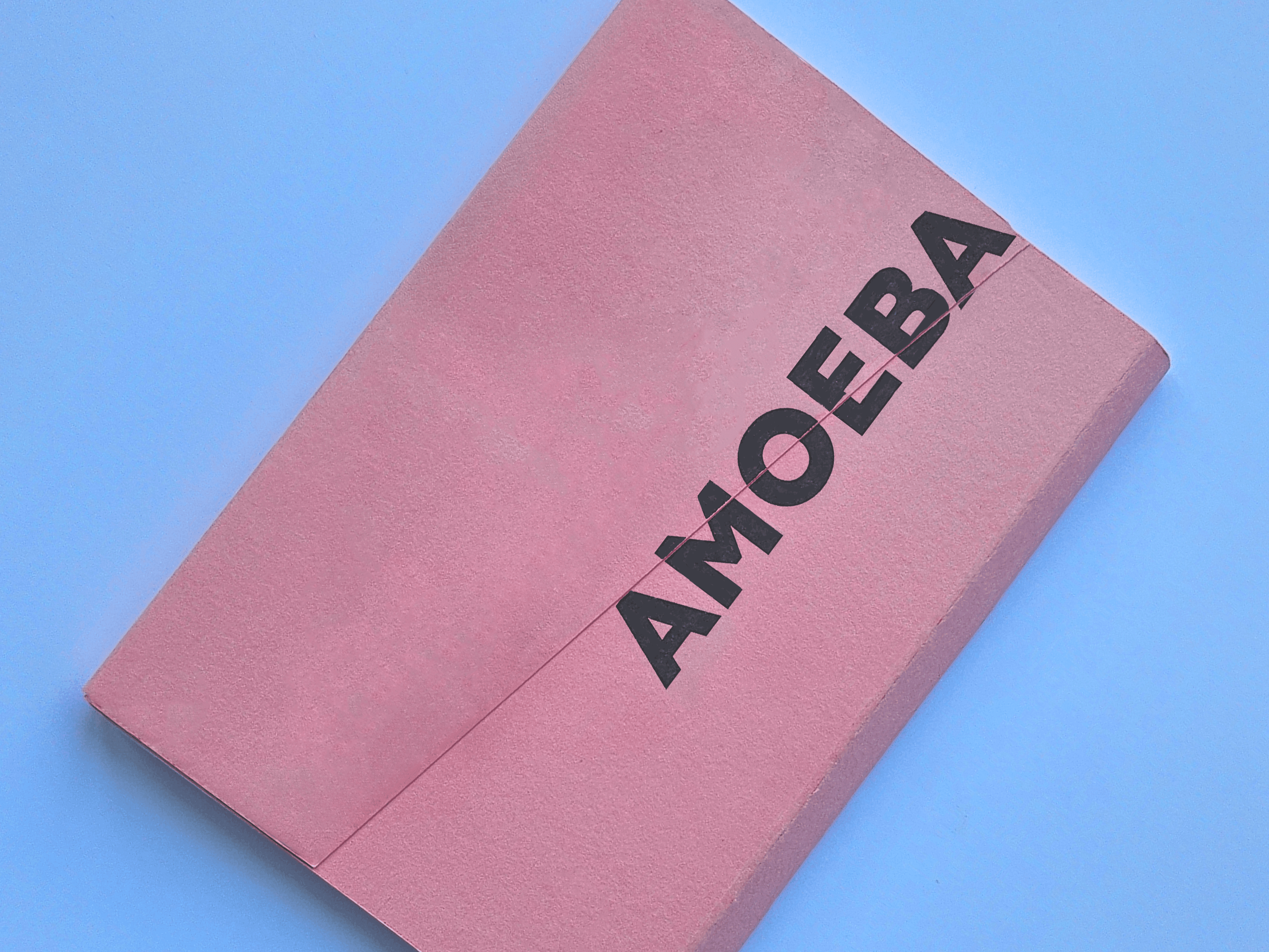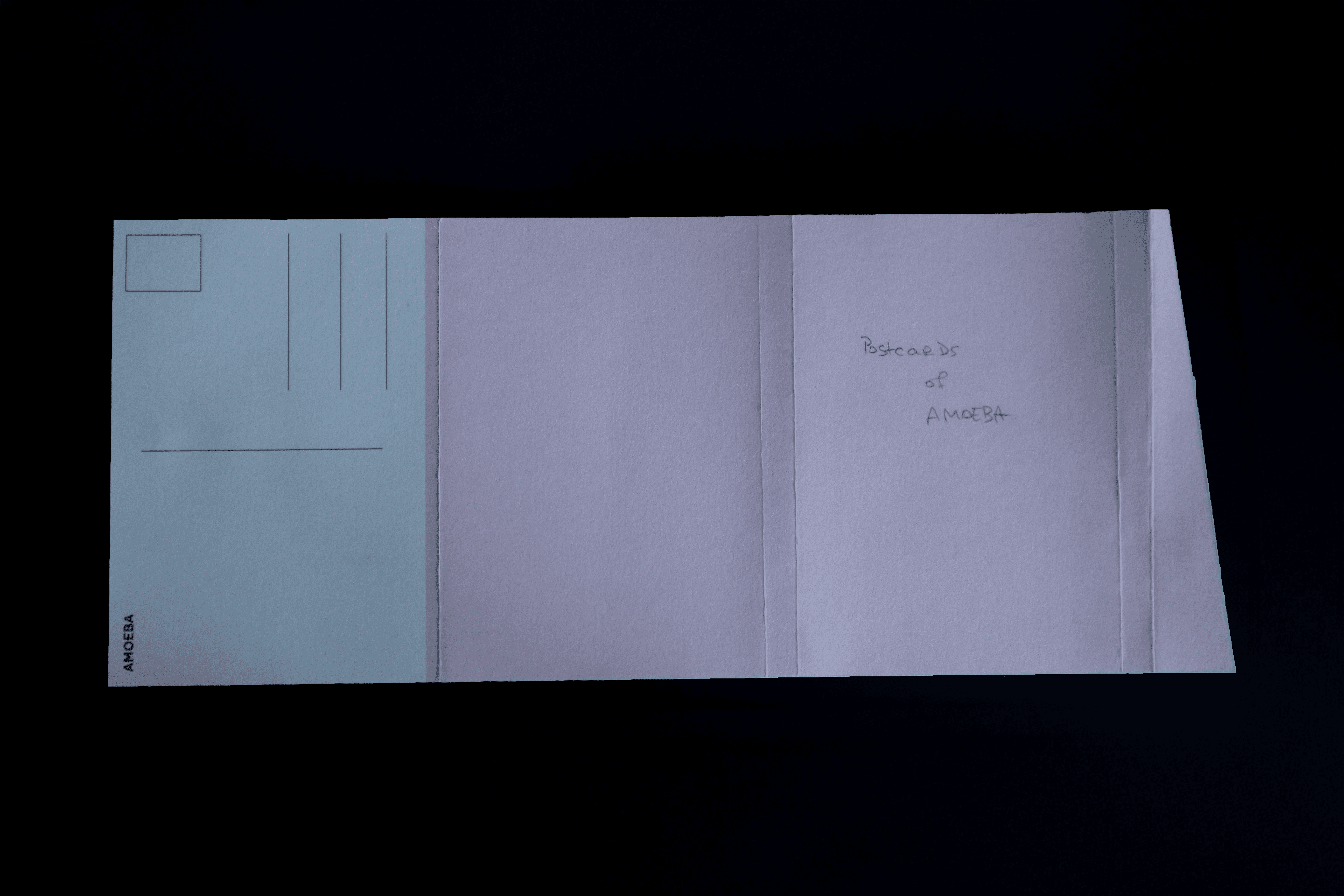 Making the artifact from sketch to a physical artifact was a process of trial and error. I made physical mockups using blank paper to work out sizing and dimensions that felt substantial and felt a good size for a postcard. This also allowed me to work out how I would construct the artifact and how it could most easily be printed for the client to print it for their promotion campaign. I also implemented an overhang with a diagonal cut as a method of bringing the visual language of the Amoeba identity into physical form.
